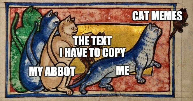 First day of the month, that is #medievalcatmemeday. This one is flawed, unfortunately - those who follow us know that medieval cats didn't always behave in an exemplary manner, either! #medievalmeme #medievalcat #medieval