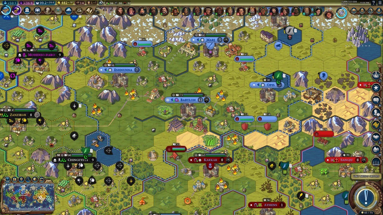 As I look over Orc (Babylon) lands, I realize that despite having only five cities, they have build ten wonders.