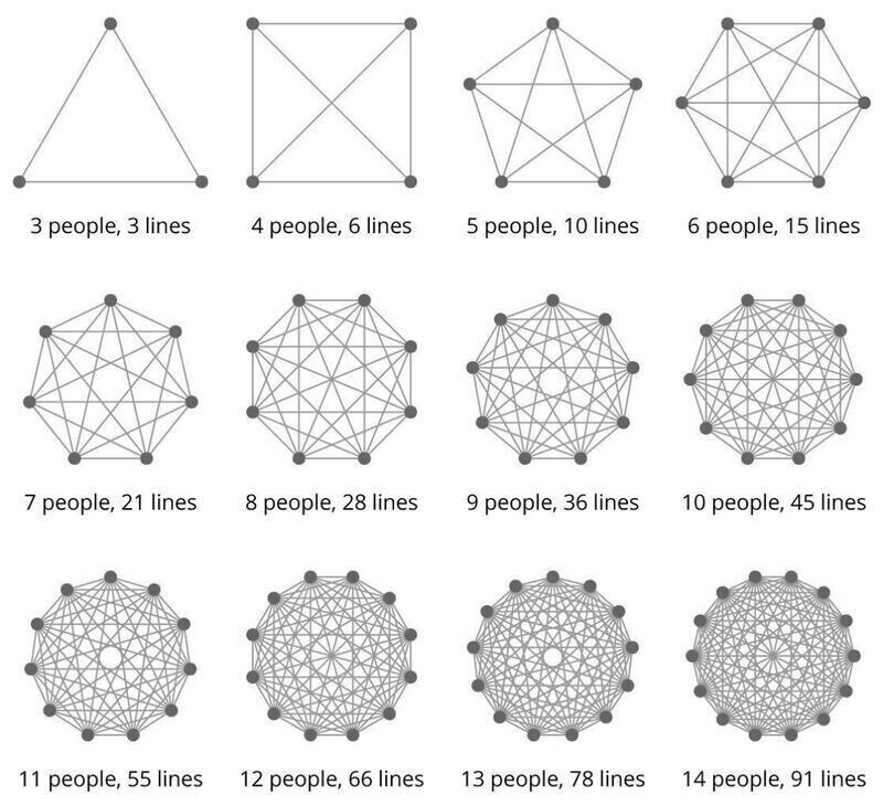 Why small teams win. #Metcalfe's law says that every time you add a new user to a network, the number of connections increases proportionally to the square of the number of users...