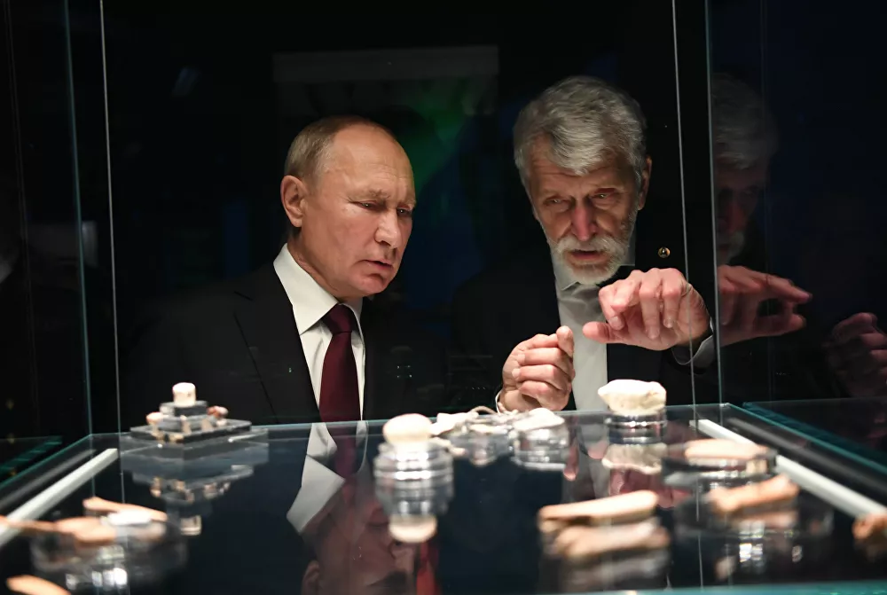 ➊ Russian President Vladimir #Putin during tour of the Museum of Archaeology @ #Chudov monastery @ the Moscow Kremlin, 4 Nov. 2020