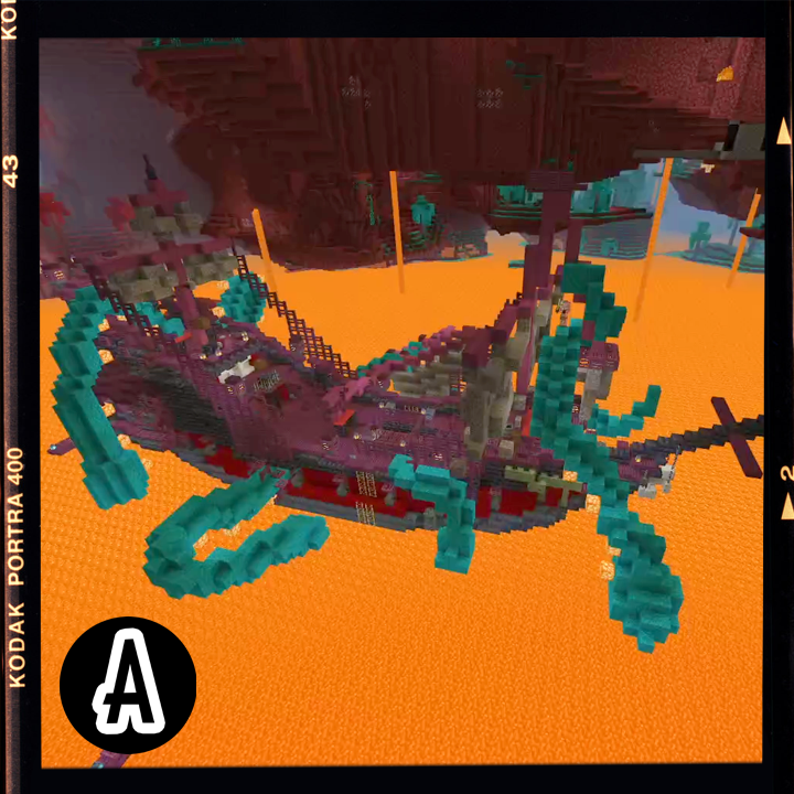 One season I decided I wanted a Nether base, so I made a Cthulhu inspired shipwreck. This is another one where I couldn't get it all in a pic, so check out the walkthrough.