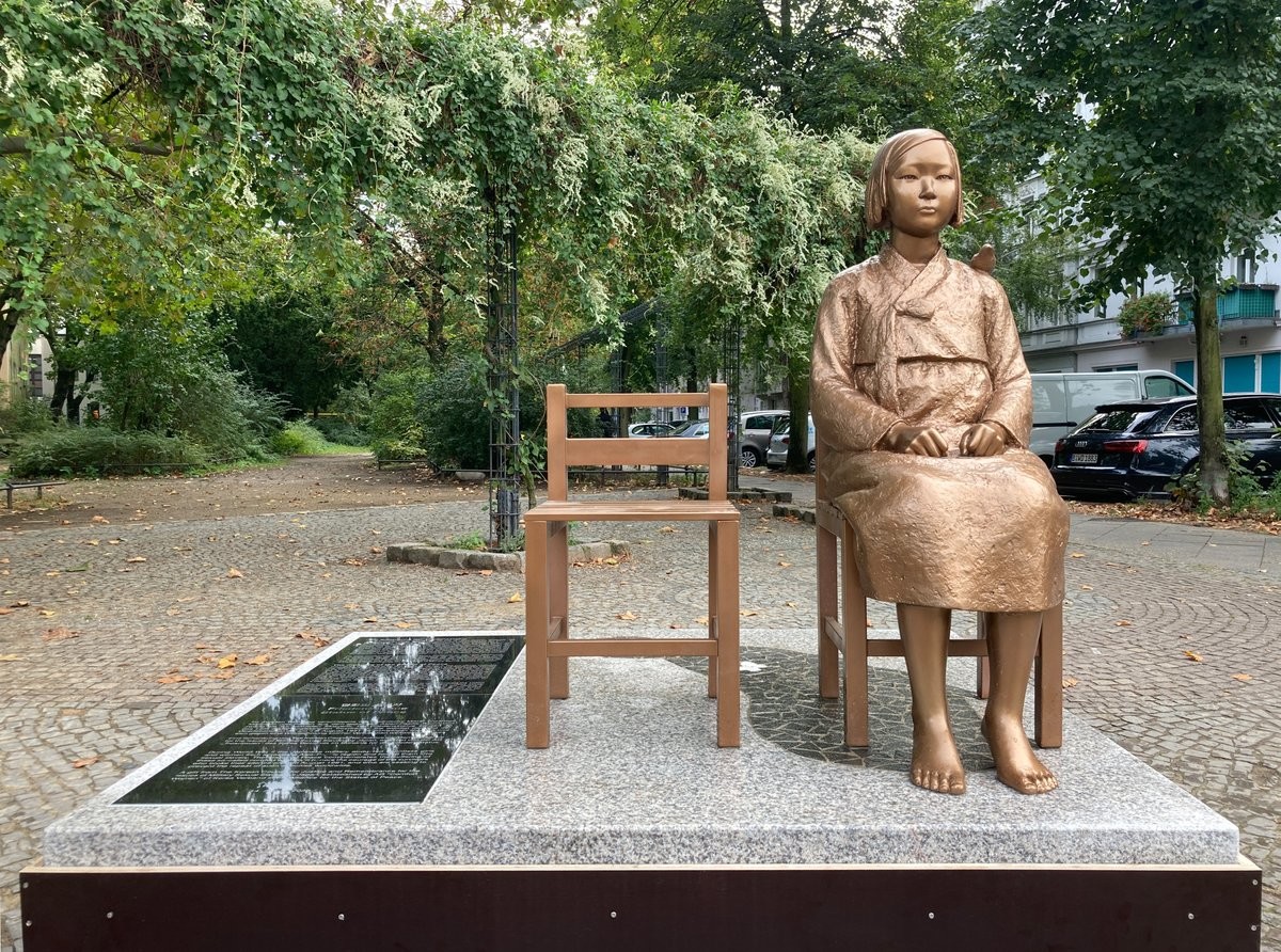 In #Moabit entdecken viele Passant*innen derzeit die neue "Friedensstatue", die an Frauen & Mädchen erinnert, die im 2 Weltkrieg #vergewaltigt & sexuell versklavt worden sind. Auf Druck @BotschaftJapan@twitter.com fordert das Bezirksamt #Berlin jetzt, d Statue bis 14.10. abzubauen. Thread ⬇️