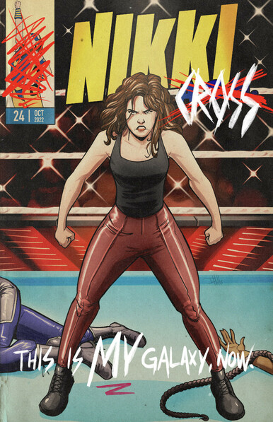 This piece of fan art was inspired by an October episode of Monday Night RAW when Nikki Cross took out Bianca Belair and Bayley, shedding her superhero persona in the process.