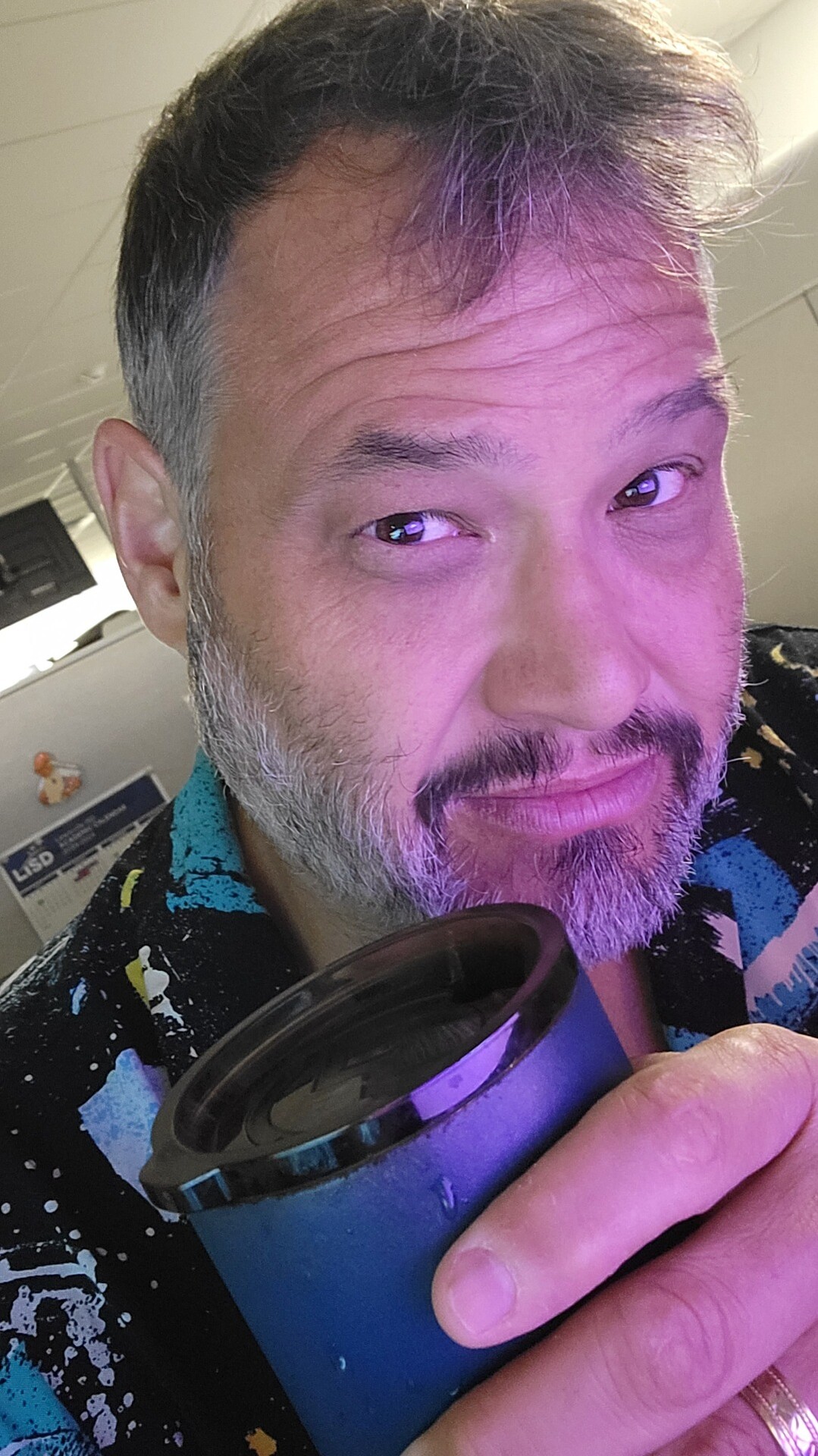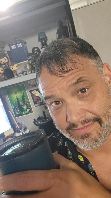 The last day of July 2023! And its the start of #TechWeek for my show, which opens Friday. It's going to be a long week of work, driving, and rehearsals. #MondaySelfie #MondayVibes #Coffee #Caffeine #OfficeSelfie #TheHomecoming #HaroldPinter #ActorLife #NoSleep