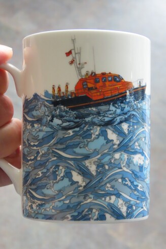 Meine allerneuste #montagstasse ist gleichzeitig eine Spende für den RNLI, die Royal National Lifeboat Institution. Jedes mal, wenn ich einen ihrer Läden sehe, in denen man Mitbringsel erstehen kann, die sowohl sinnvoll als auch schön sind, were ich schwach. Diesmal habe ich nur an mich selbst gedacht beim Einkauf: Einkaufstaschen (mit gelben Gummistiefeln), Geburtstagskarten, Regenschirm - alles was ich so brauche im täglichen Leben kann jetzt auch Leben retten.