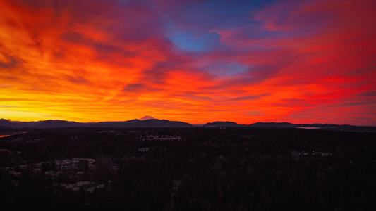 Sky above Woodinville was on fire this morning, worth rushing out of bed to put the drone in the air to get some pictures. Clear enough to see #MtRainer peeking out in the distance. #DJImini2 #dronephotography