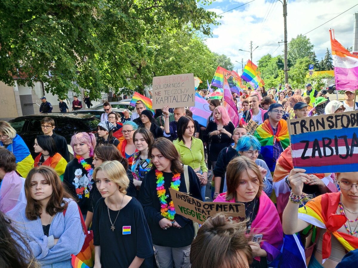 Tak było na I Marszu Równości w Pruszkowie, dziękujemy Kolektywowi Pałacyk za zorganizowanie inkluzywnego wydarzenia, wolnego od tęczowego kapitalizmu i fałszywych sojuszników mamy nadzieję, że za rok przyjdzie pół miasta! 💜🖤