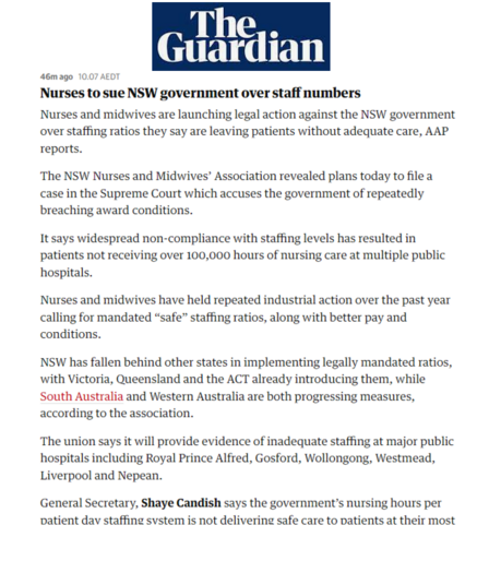 NSW Health staff are awesome! Overworked, underpaid, and understaffed, but Man! do they do great work.
