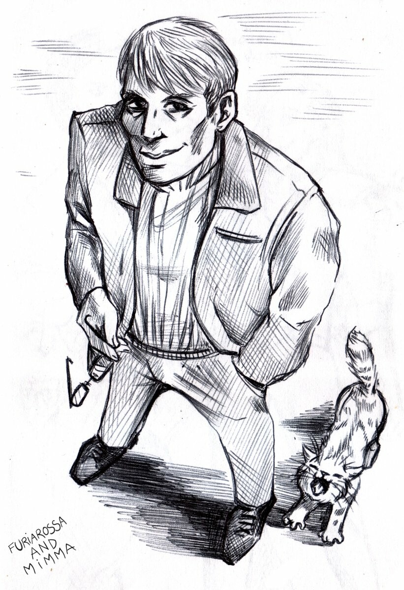 Quick sketch (ballpoint pen + a touch of digital) of Florio Blanchard, one of the characters from the novel (written in Italian), "L'Inverno delle Rose".