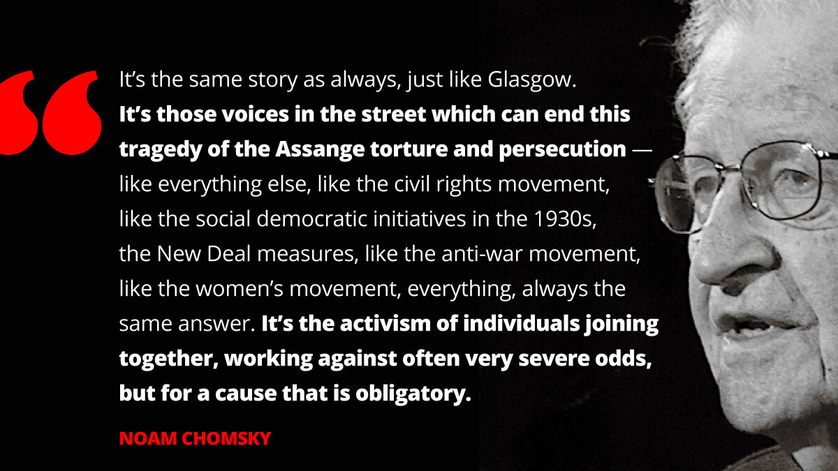 Noam Chomsky on Julian Assange: "It's those voices in the street which can end this tragedy - the activism of individuals joining together" #FreeAssangeNOW #NewYear2022 https://t.co/Dw4r3Lbc8I