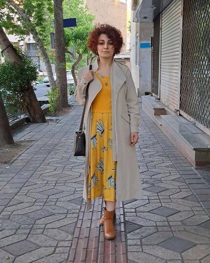 Die Tante der ermordeten 16jährigen #NikaShakarami hat ein Foto von sich ohne Hijab gepostet und geschrieben, dass sie in Erinnerung an Nika ein Outfit trägt, dass sie für sie genäht hat. #IranRevolution #IRGCterrorists