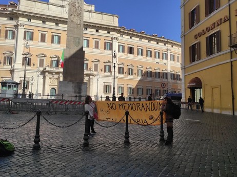 Adesso a #Roma blitz di attiviste e attivisti contro il Memorandum Italia - Libia.