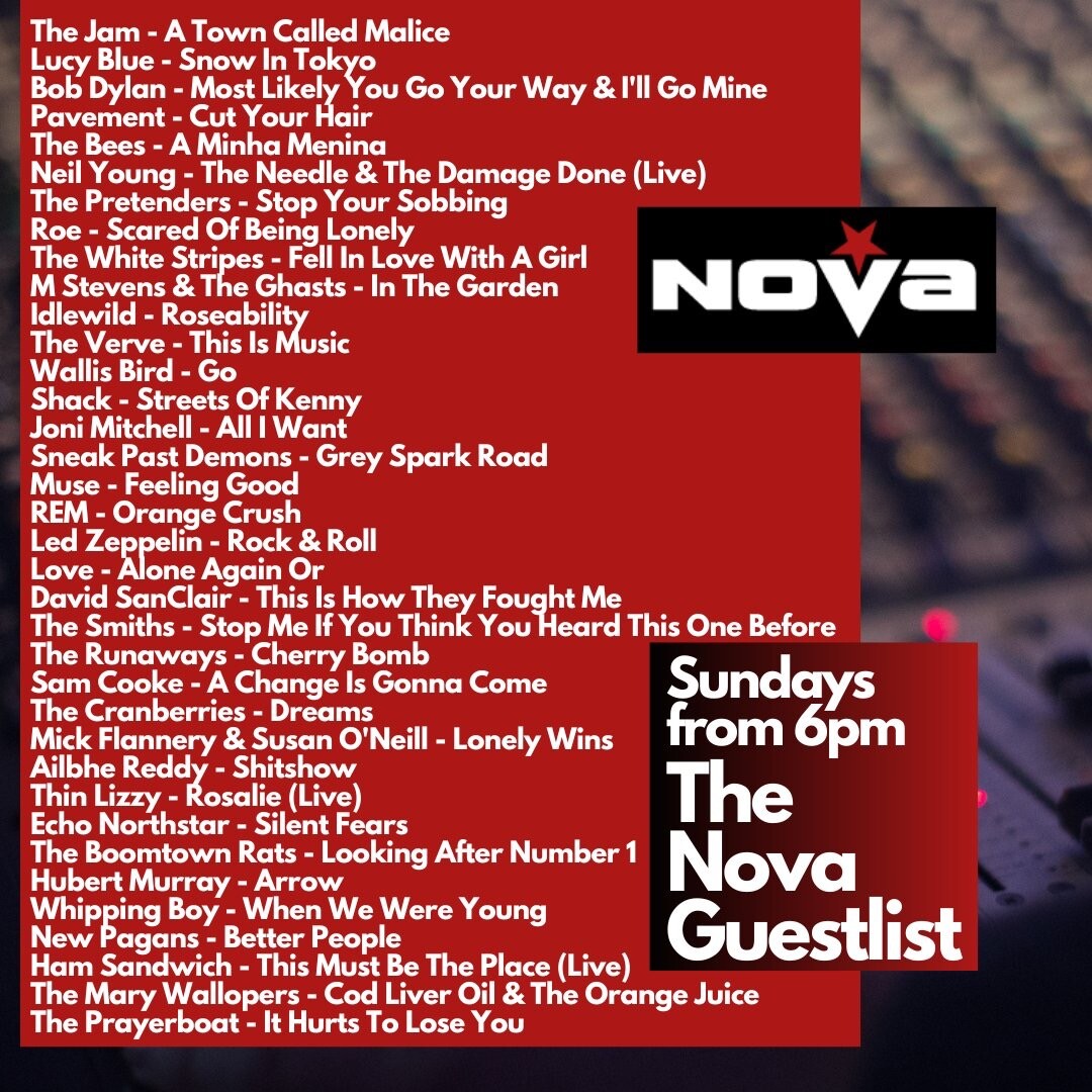 Here’s a list of the songs I played on the #NovaGuestlist last night… few classics, a few left fielders, and lots of Irish! Anything jump out to you?