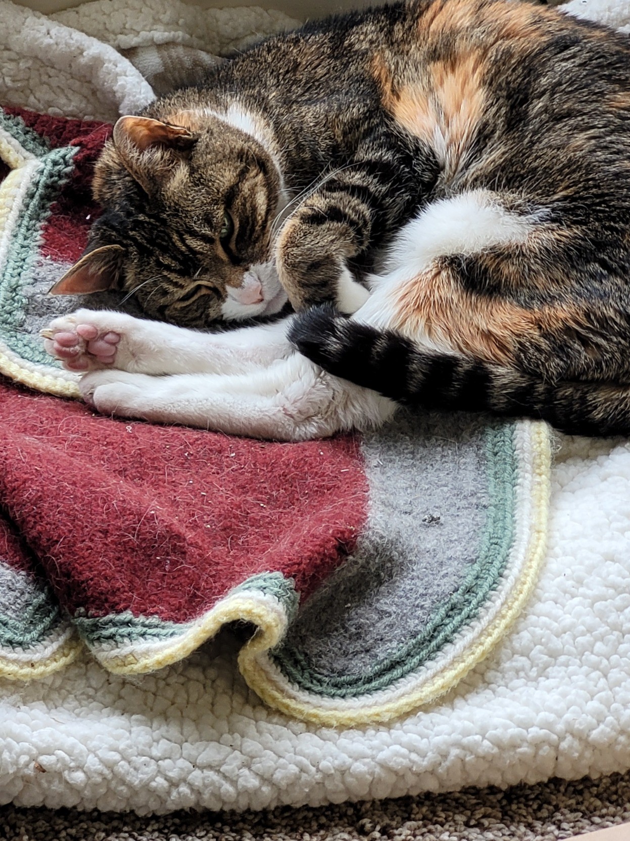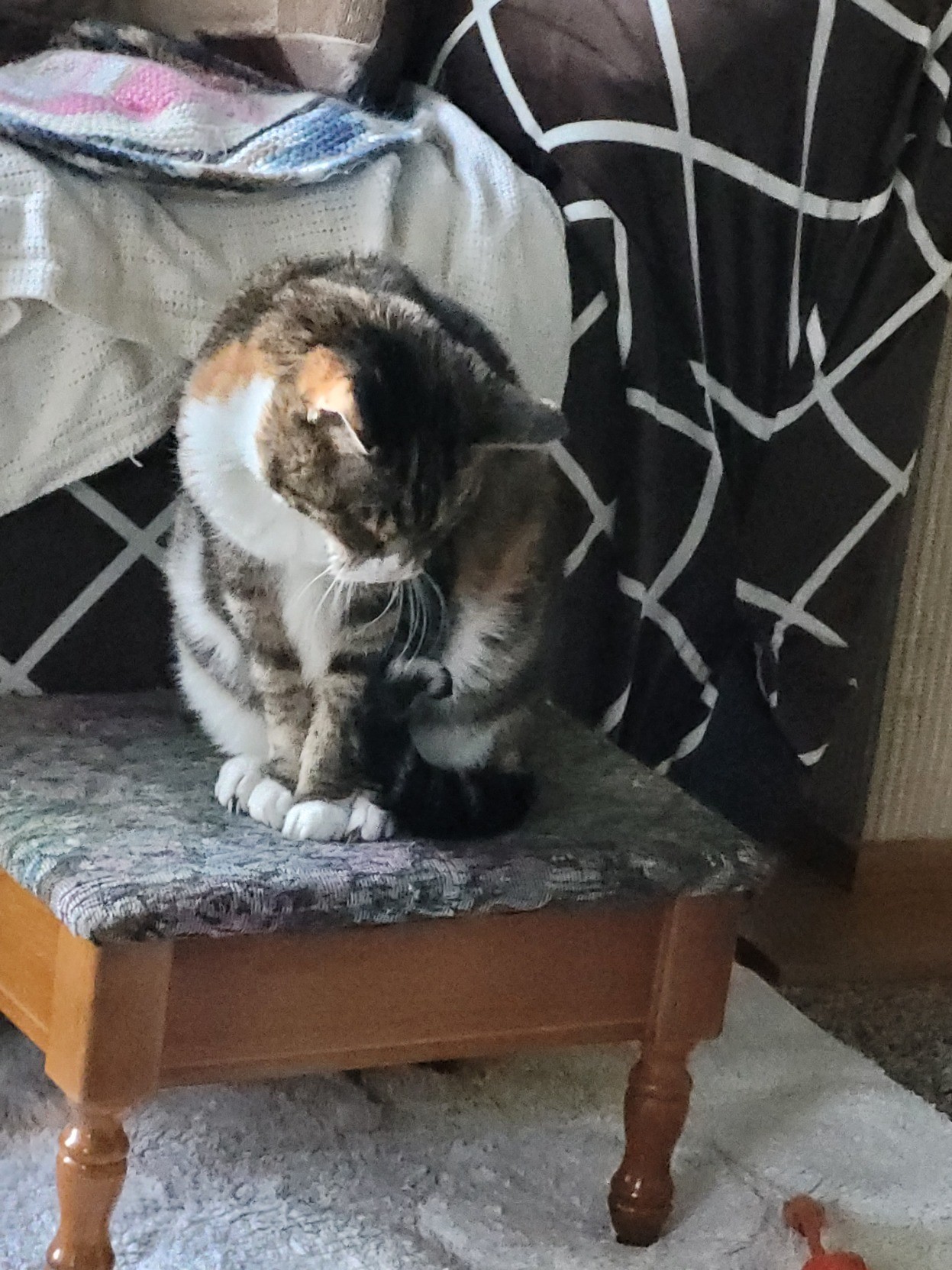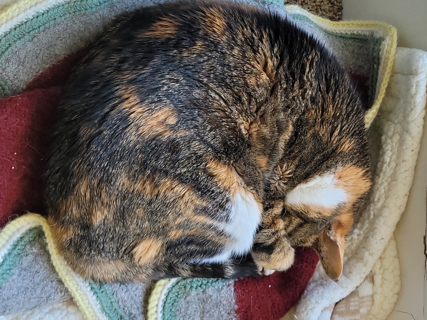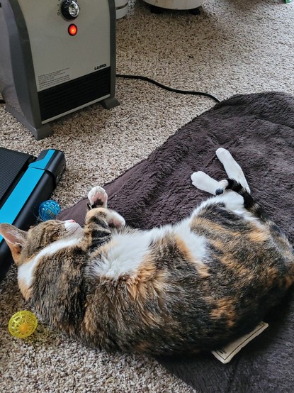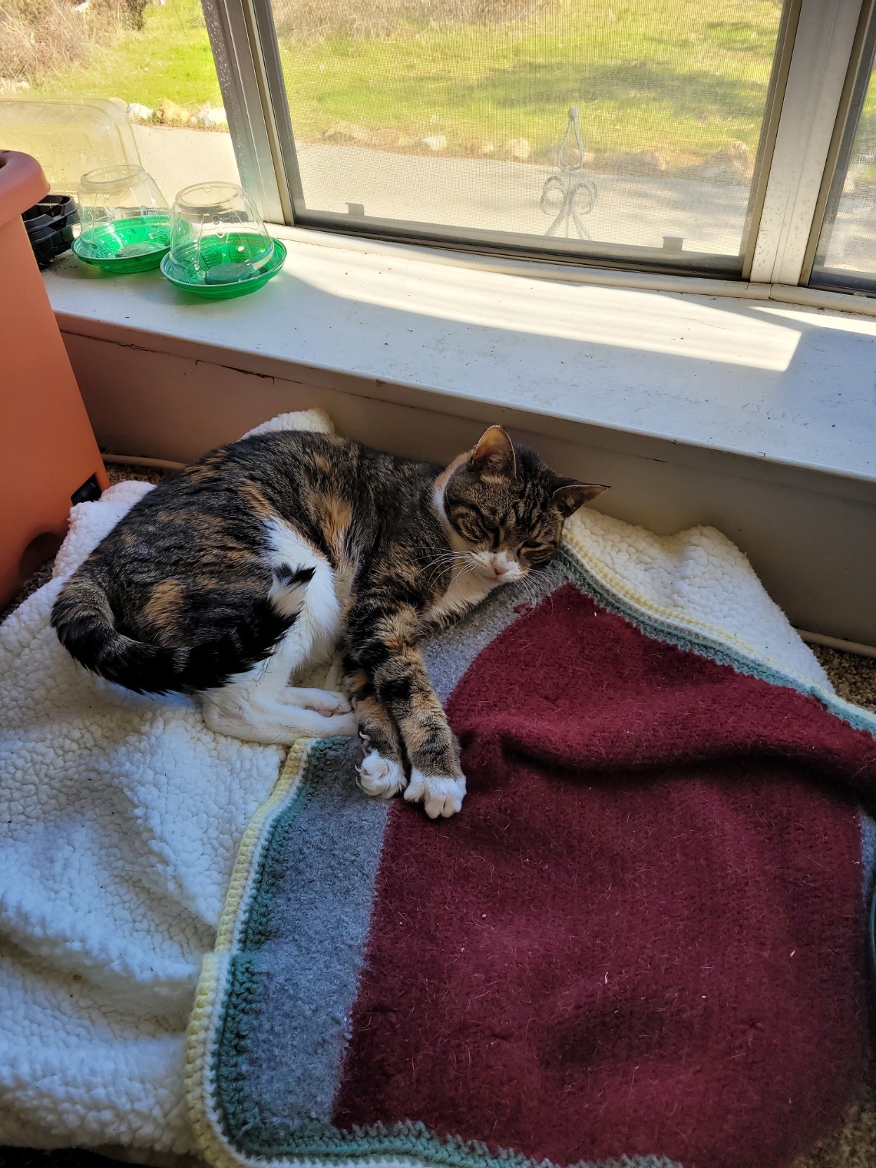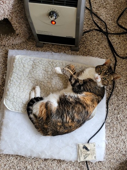 With Nutmeg's older hip on her kitty heating pad next to her personal heater