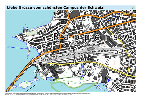 Greetings from the most beautiful campus in Switzerland! It's easy to create a #postcard for #OSMcards project "Send me a postcard!" by @shtosm@twitter.com Use e.g. MapOSMatic to download a PDF with (almost) any map area. Choose paper size 148×105mm² (A6); any style: https://maposmatic.osm-baustelle.de/