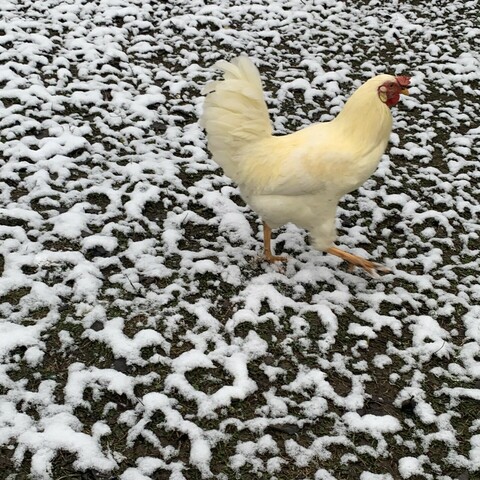 #Oberfranken #Hühner #Schnee Hahn zu verschenken. Dieser Junghahn ist eine Mischung verschiedener Rassen und ist eine tolle Ergänzung für eine Gruppe Hennen. Dieses Jahr geschlüpft, aufgewachsen mit viel Auslauf und kräht seit letzter Woche.
