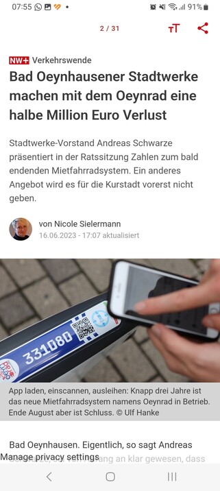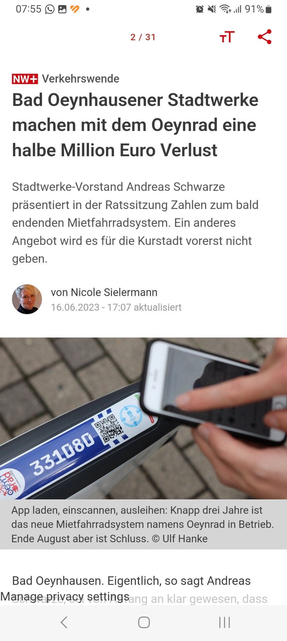 Und die CDU #Oeynhausen hat es von Anfang an gewusst... 🙄 Empfehlung aus der NW-App: Bad Oeynhausener Stadtwerke machen mit dem Oeynrad eine halbe Million Euro Verlust