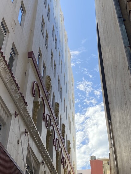 Looking up at one of the older buildings, noticed the reflections in the first floor windows look like they've been painted on with oils.