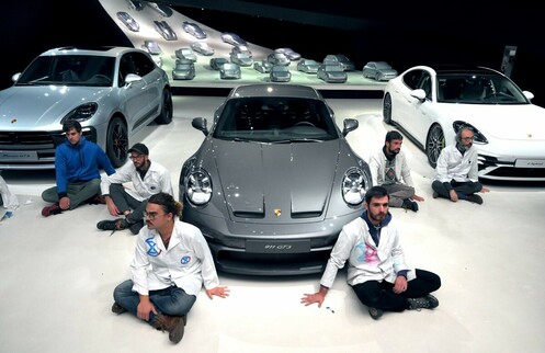 9 members of #ScientistRebellion remain glued at @Porsche pavilion in @Autostadt. Usually @volkswagen lobbies politicians in Berlin & Brussels. Instead, we ask CEO #OliverBlume to lobby for the climate by pushing @OlafScholz & @Wissing to install a speed limit of 100 km/h.
