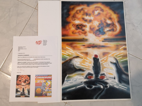 #Zapp #OliverFrey Il mio #flexDelGiorno è un originale di Oliver Frey (https://en.wikipedia.org/wiki/Oliver_Frey) con tanto di certificato di garanzia formato che @bisboch dovrebbe già conoscere. Ho avuto la fortuna di comperare questo originale da Roger Kean (https://uk.linkedin.com/in/roger-kean-27467b25) e di diventarne amico. La tavola è in lussuoso formato A3 ed è stata utilizzata come "mini poster" all'interno della rivista "Commodore Force" (la riedizione di Zzap! 64 da parte di Eurovision) nel 1993 (https://archive.org/details/zzap64-magazine-101/page/n33/mode/2up)