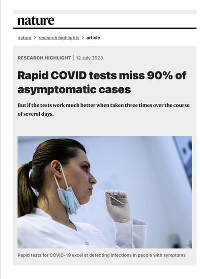 Rapid COVID tests miss 90% of asymptomatic cases.