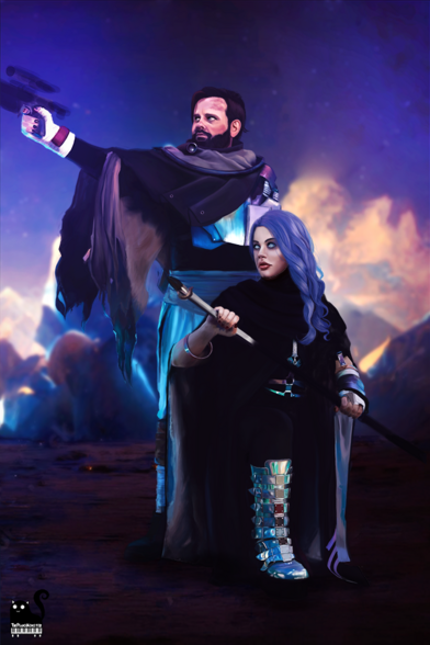 Haven't posted an update on my current #Starfield & #FriendlyFire8-Artwork in a while - I'm more happy with the new planetary landscape in the background. Working on the final details of those two lovely space cowboys.