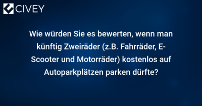 Wie würden Sie es bewerten, wenn man künftig Zweiräder (z.B. #Fahrräder, E-Scooter und Motorräder) kostenlos auf #Auto-#Parkplätzen parken dürfte? #CiveyFrage via @civey_de https://civey.com/umfragen/27826/wie-wurden-sie-es-bewerten-wenn-man-kunftig-zweirader-z-b-fahrrader-e-scooter-und-motorrader-kostenlos-auf-autoparkplatzen-parken-durfte