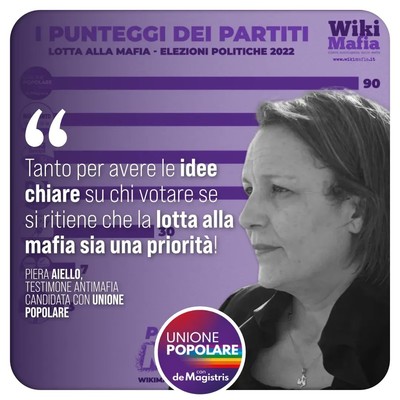RT @unione_popolare: Con @demagistris e con i tanti candidati e candidate abbiamo aderito convintamente alla campagna di @WikiMafia #ParlateDiMafia. Per noi di #UnionePopolare la #Mafia resta uno dei principali problemi irrisolti in questo paese e non parlarne significa fare il loro gioco.