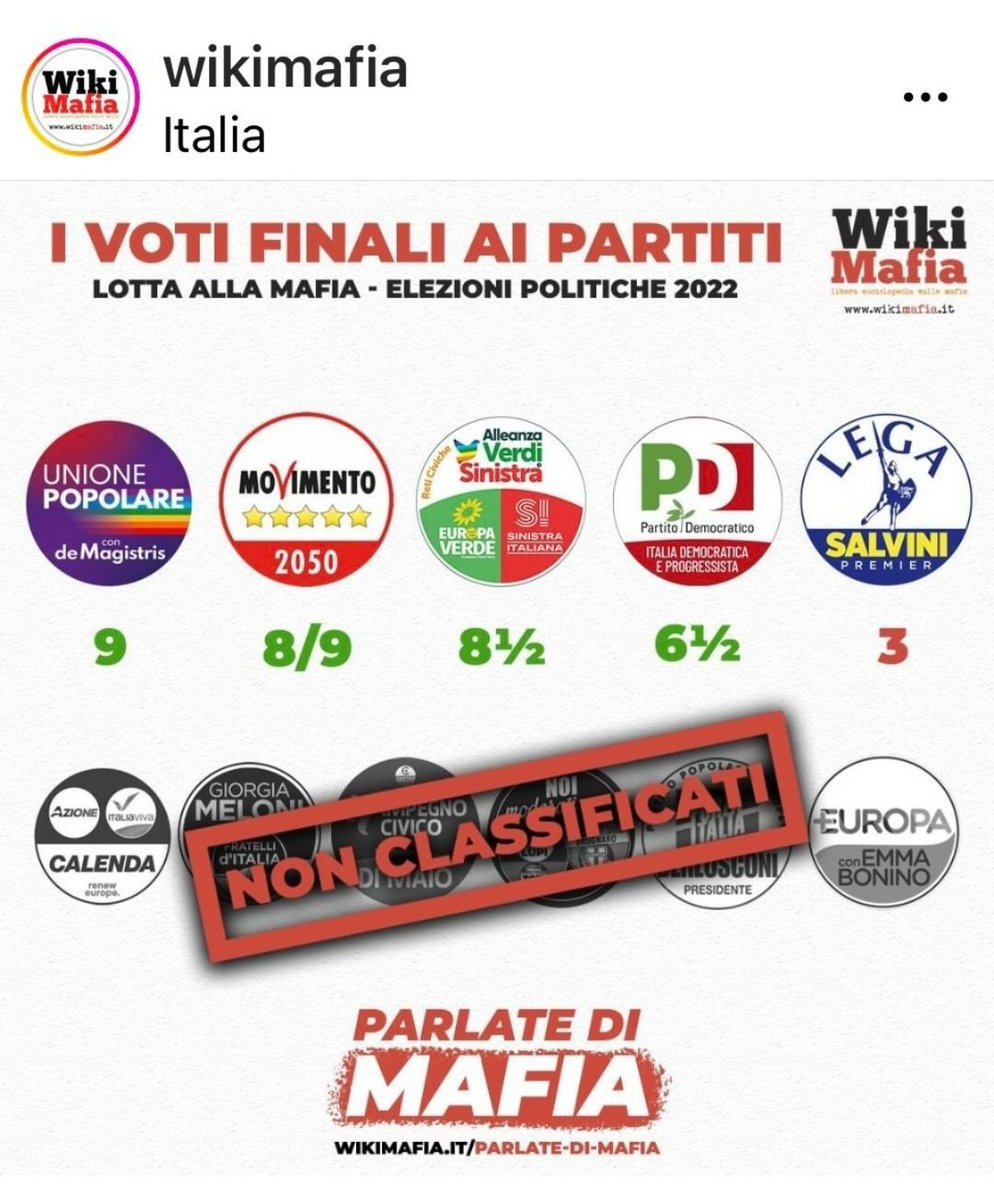 In base all'analisi dei programmi effettuata da @WikiMafia@twitter.com il nostro programma è risultato essere quello più attento alla lotta alla #Mafia con un punteggio di 9/10. Importante, ma ancora più importante è che il #ParlateDiMafia possa tornare centrale nel dibattito politico.