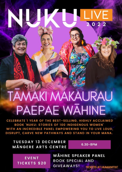 Event itself is 6:30pm-8:30pm, tx $20. #Nuku #WahineMāori #Aotearoa #NZTwits https://events.humanitix.com/nuku-live-2022