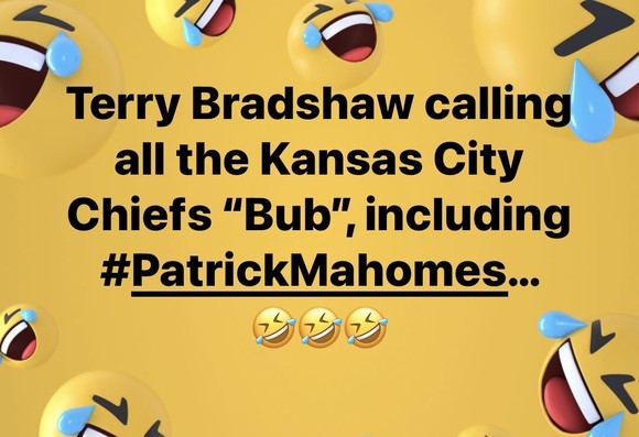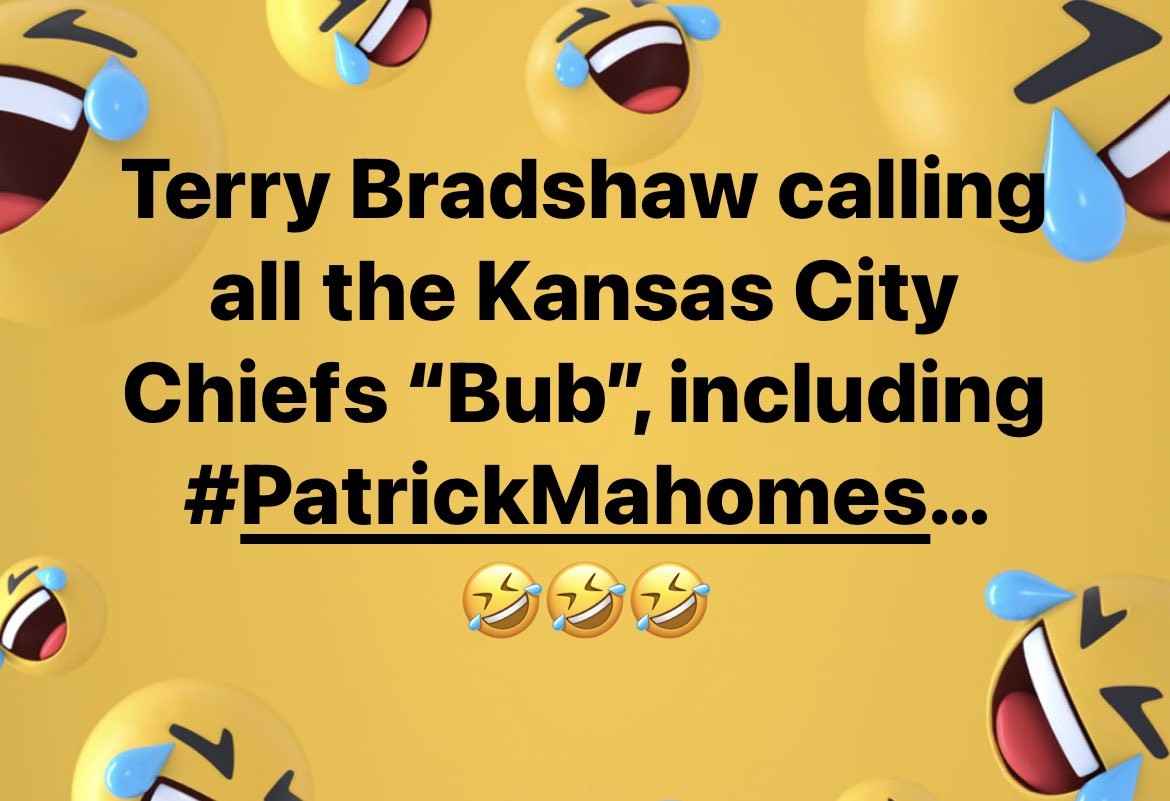 Terry Bradshaw calling all the Kansas City Chiefs “Bub”, including #PatrickMahomes…🤣🤣🤣