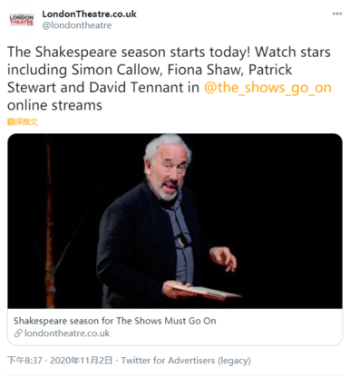 The shows must go on要放我菲姨的Richard II了!还有Patrick Stewart的Macbeth。大提提的可能是新的?还是放n久前录的那个dvd视频?那他们仨都录了欸,估计是新的 :0020: