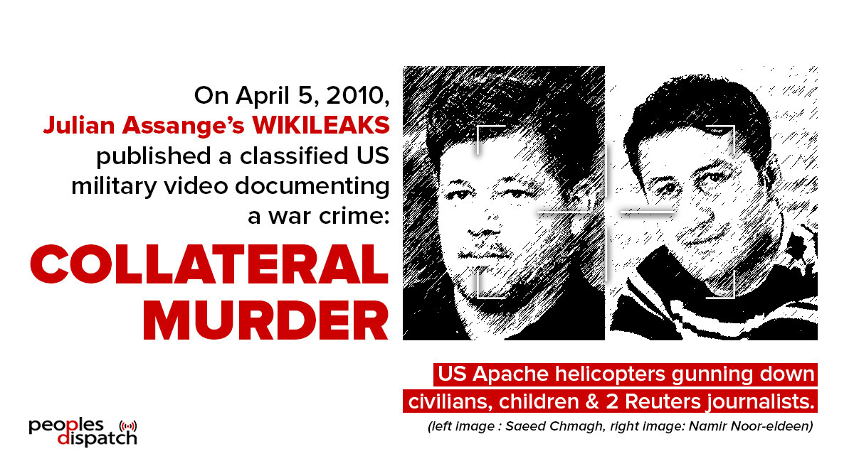 #PeoplesHistory | On April 5, 2010 #JulianAssange’sWikileaks published the “Collateral Murder” video, which showed the gunning down of civilians, children and two Reuters journalists, uncovering war crimes in Iraq. For revealing these, and other imperialist war crimes, #Assange faces up to 175 years in prison if extradited to the #US.