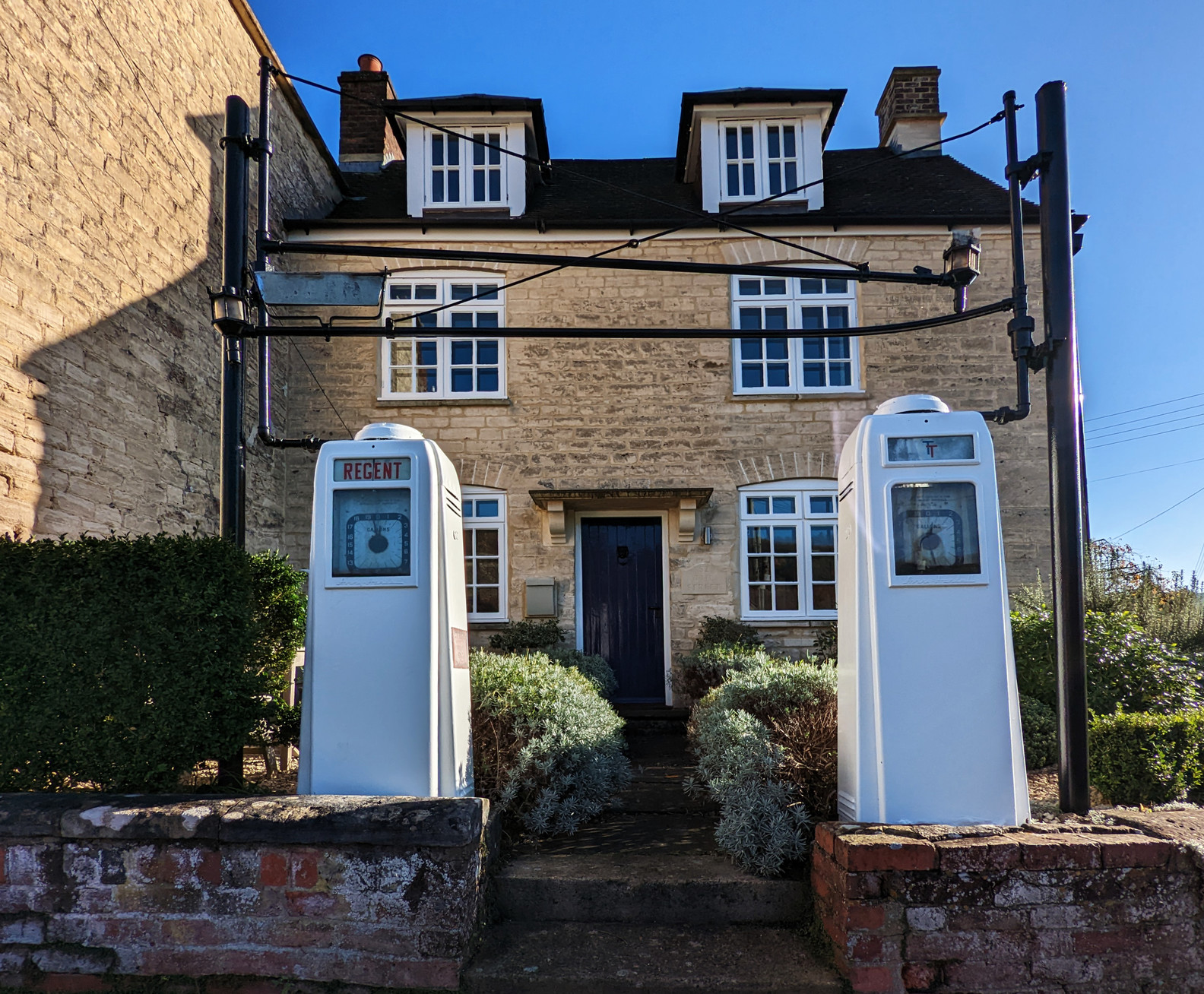 #oldpetrolpumps #Petrolpumps These two pumps in #uley are clearly not abandoned, having recently been painted. I'd love to know more about them.