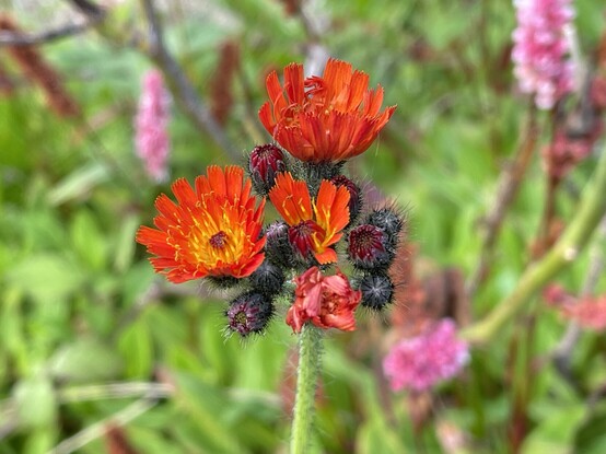 Fox-and-cubs flowers found in my front garden. According to the #PictureThis app it’s not native to the #UK. Love the small vivid orange flowers with it’s yellow centre. A species of #Hawkweed