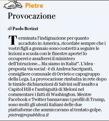 Può anche darsi che quello attuale non sia il miglior ministero dell'Istruzione possibile, ma un consigliere comunale che propone di assaltarlo andrebbe allontanato dalle istituzioni subito, senza se e senza ma. Capogruppo della #Lega a #Orvieto.