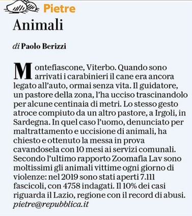 Legare un cane a una macchina. Trascinarlo finché muore.