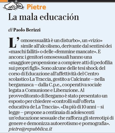 "L'omosessualità è un disturbo, come l'alcolismo". "Gli omosessuali hanno maggiore propensione a compiere atti di pedofilia sui figli".