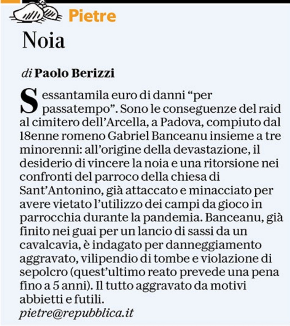 Devastare un cimitero per vincere la noia. Risultato: 60 mila euro di danni.
