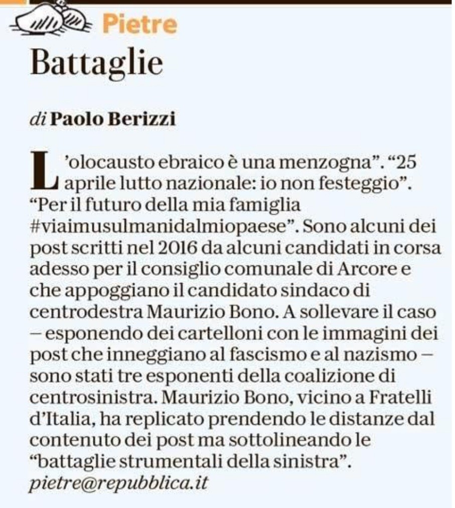Ecco i post dei candidati consiglieri nella lista dell'aspirante sindaco di Arcore vicino a #FDI: "L'olocausto ebraico è una menzogna", "25 aprile lutto nazionale", "Per il futuro della mia famiglia via i musulmani dal mio paese".
