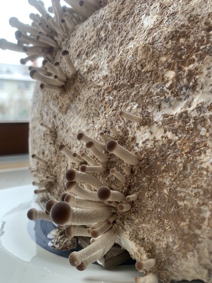 Tag 10. Man kann den #Pilzen fast beim Wachsen zu schauen. Leider ist nur eine von beiden Kulturen erfolgreich. Die Zweite ist komplett mit Schimmel bedeckt und wird morgen entsorgt.