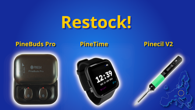 In stock: Bundles, #PinePhone, #PinebookPro, #Pinecil V2, #PineTime, keyboard case as well as accessories