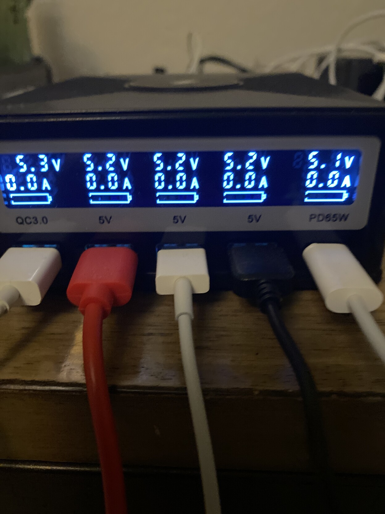 - It charges slowly. Slowly enough that it's been a PITA. Slowly enough that I plugged it into my workbench #PinePower to measure exactly how slowly: 5V / 1.8A (9W). Which makes the 20W wall wart that came with it a little funny.