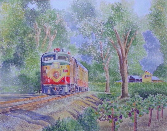 #ayearforart #california #napavalley #train #painting #watercolor #MastoArt #artist #artwork #art #wine #transporttunes #PlanesTrainsAndAutomobiles #vintage #music #swing #jazz