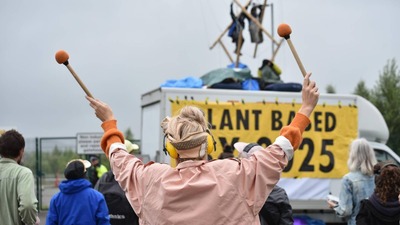 "Animal Rebellion stands in solidarity with Just Stop Oil because the road to averting catastrophe isn't easy but it has two very simple steps: #JustStopOil, and a #PlantBasedFuture"