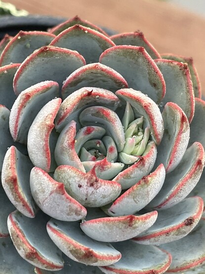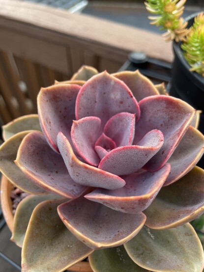 Oh! Who is this? Massively stressed Echeveria hyb (no idea) getting ready to put up the bee sex flag.