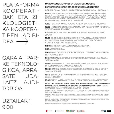 Orduan bihar, uztailak 1/Arrasaten, antolatu dugun #PlataformaKoop eta #Ziklologistika jardunaldira bazatozte ezta?