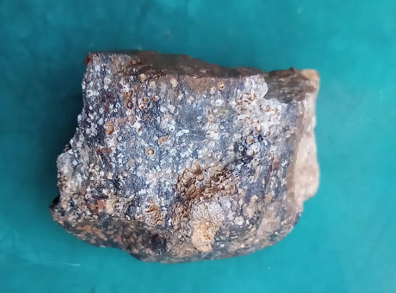 A rare example of a Carboniferous black chert glacial erratic with crinoid debris & rugose coral, from ploughsoil at Long Melford (south Suffolk, UK).