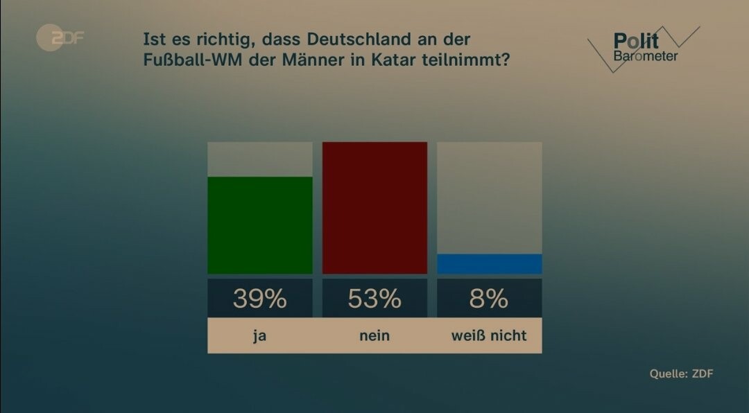 Mehrheit in Deutschland wäre laut #Politbarometer dafür gewesen, dass das deutsche Team die Fußball WM in boykottiert.