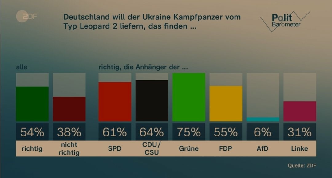 In Anbetracht der Situation in der Partei sicher spannend für @dieLinke@twitter.com zu sehen, was ihre Wähler*innen zur Lieferung von Kampfpanzern denken.